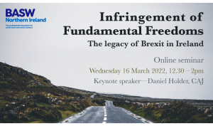 Week 3: BASW Northern Ireland and IASW are co-hosting what promises to be a fascinating event – ‘Infringement of fundamental freedoms: The legacy of Brexit in Ireland’ – with special guest Daniel Holder from the Committee on the Administration of Justice (CAJ).